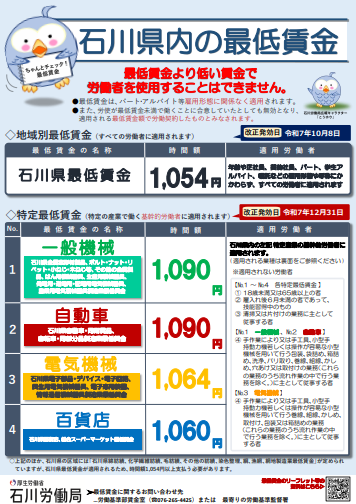 - 石川県最低賃金改正についてのご案内 2025年9月24日