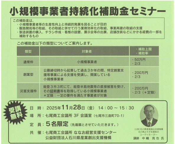 | 実施機関・主催 | 七尾商工会議所 |