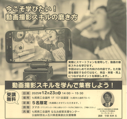 【七尾商工会議所】動画撮影スキルを学んで集客しよう!